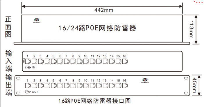 | 產(chǎn)品名稱 | 16路百兆POE網(wǎng)絡防雷器 | |||